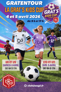 L’école de foot de l’US Gratentour Football vous donne rendez-vous pour la Grat’s Kids Cup 2026 les samedi 4 et dimanche 5 avril 2026 au stade du Séquestre !