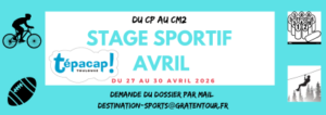 • Déroulement : les stages sportifs sont destinés aux enfants allant du CP au CM2. Ils peuvent se dérouler sur la journée ou encore sur la demi-journée durant toute une semaine.